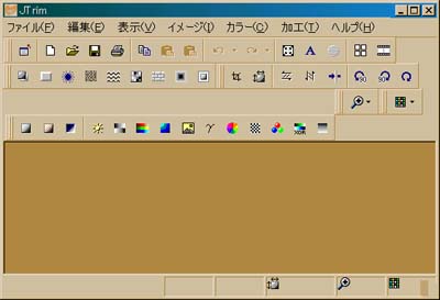 ◆文字入れの流れ JTrim 1.20を立ち上げた画面 ![]() 1.「ファイル」「開く」で、ダウンロードしてきたフリー素材のバナーを呼び出します。