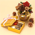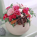 【ここがおすすめ】真ん中はプリザーブドローズ。クリスマスが終わっても楽しめます。